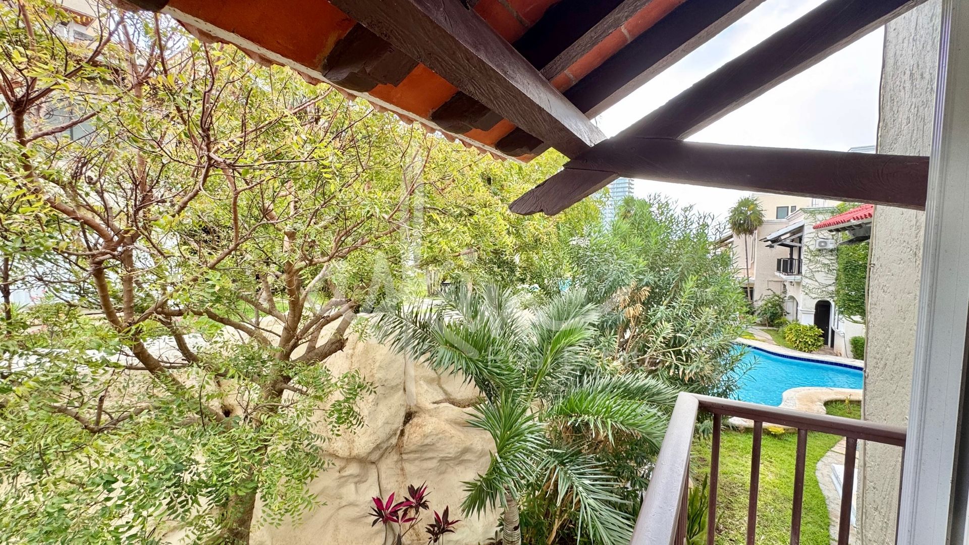 Exterior Privado y Áreas Comunes: Terraza privada con acceso directo a un jardín comunitario, ideal para disfrutar del clima de Cancún.
