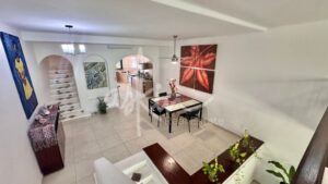 Dos plantas con un mezanine, 2 recámaras y 2.5 baños, cada recámara con baño completo y clóset.