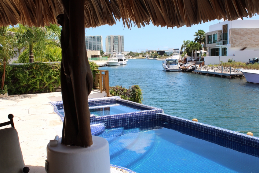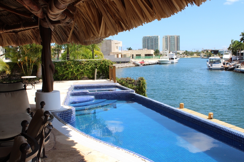 Lujosa Residencia ubicada en el exclusivo desarrollo de Marina & Golf Resort de Puerto Cancún, con su marina privada que conecta directamente al Mar Caribe, rodeada de un campo de Golf de 18 hoyos, servicio de vigilancia las 24 horas, Casa Club, SPA y gimnasio a la orilla del mar. La propiedad consta de 2 pisos perfectamente diseñados con acabados de primer nivel ofreciendo una distribución que aprovecha los espacios de manera perfecta. El estilo de construcción antiguo-mexicano le da un toque cálido a la propiedad. Todas las puertas y accesorios como su gran candelabro y algunos accesorios de baño son antiguos. La palapa ubicada en la terraza convierte a esta casa única en todo el desarrollo.